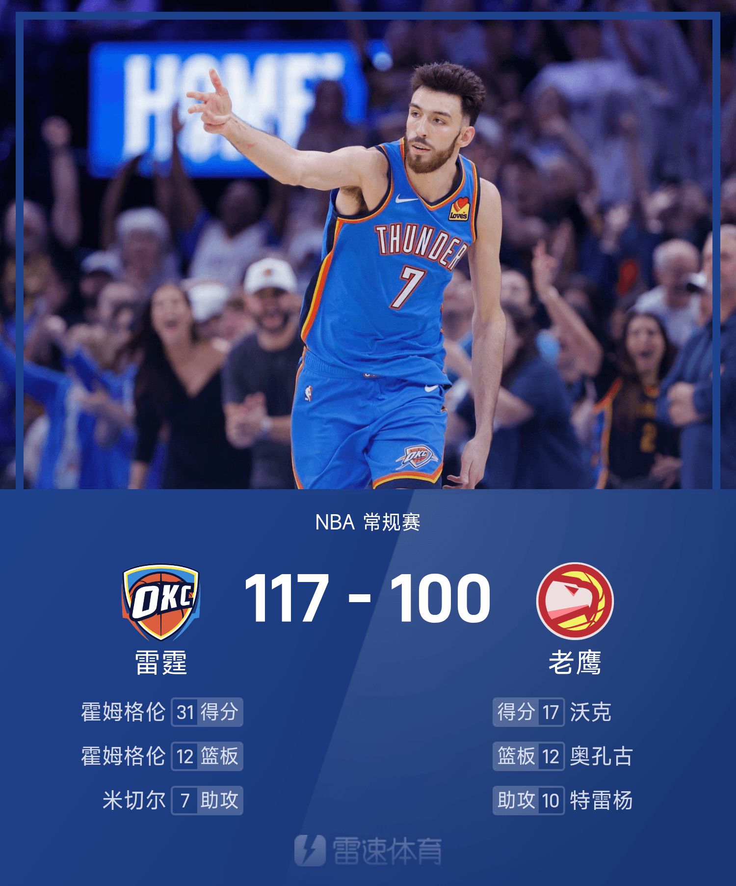 เช็ต โฮล์มเกรน คนในของ Thunder ยิงสามพอยน์เตอร์ได้ 6 ครั้ง ทำได้ 31 แต้ม 12 รีบาวด์ และสกัดกั้น 3 ครั้ง อเล็กซานเดอร์คอร์แห่งธันเดอร์ทำคะแนนได้ 30 แต้ม 4 รีบาวน์และ 5 แอสซิสต์ด้วยการโยนโทษเพียง 4 ครั้ง Thunder เริ่มต้นฤดูกาลด้วยชัยชนะสามครั้งติดต่อกันด้วยผลงานอันยอดเยี่ยมของสองสตาร์ของพวกเขา