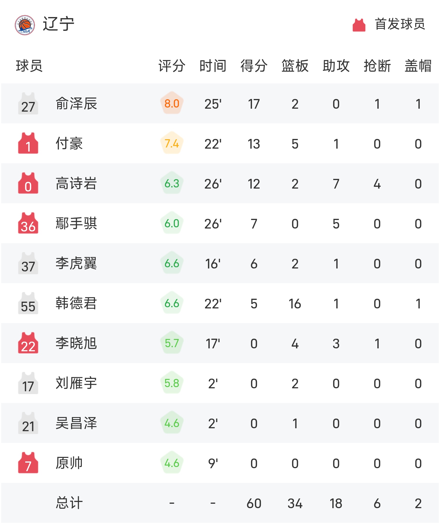 โจว ฉี 16 แต้ม 13 รีบาวด์ 1 แอสซิสต์ พาทีมคว้าชัย หยู เจ๋อเฉินคง ทำคะแนนสูงสุดในเกม 17 แต้ม 2 รีบาวด์ ผู้เล่นรุ่นเก๋า Han Dejun เป็นผู้นำในการเต้นครั้งสุดท้ายและคว้า 16 รีบาวน์
