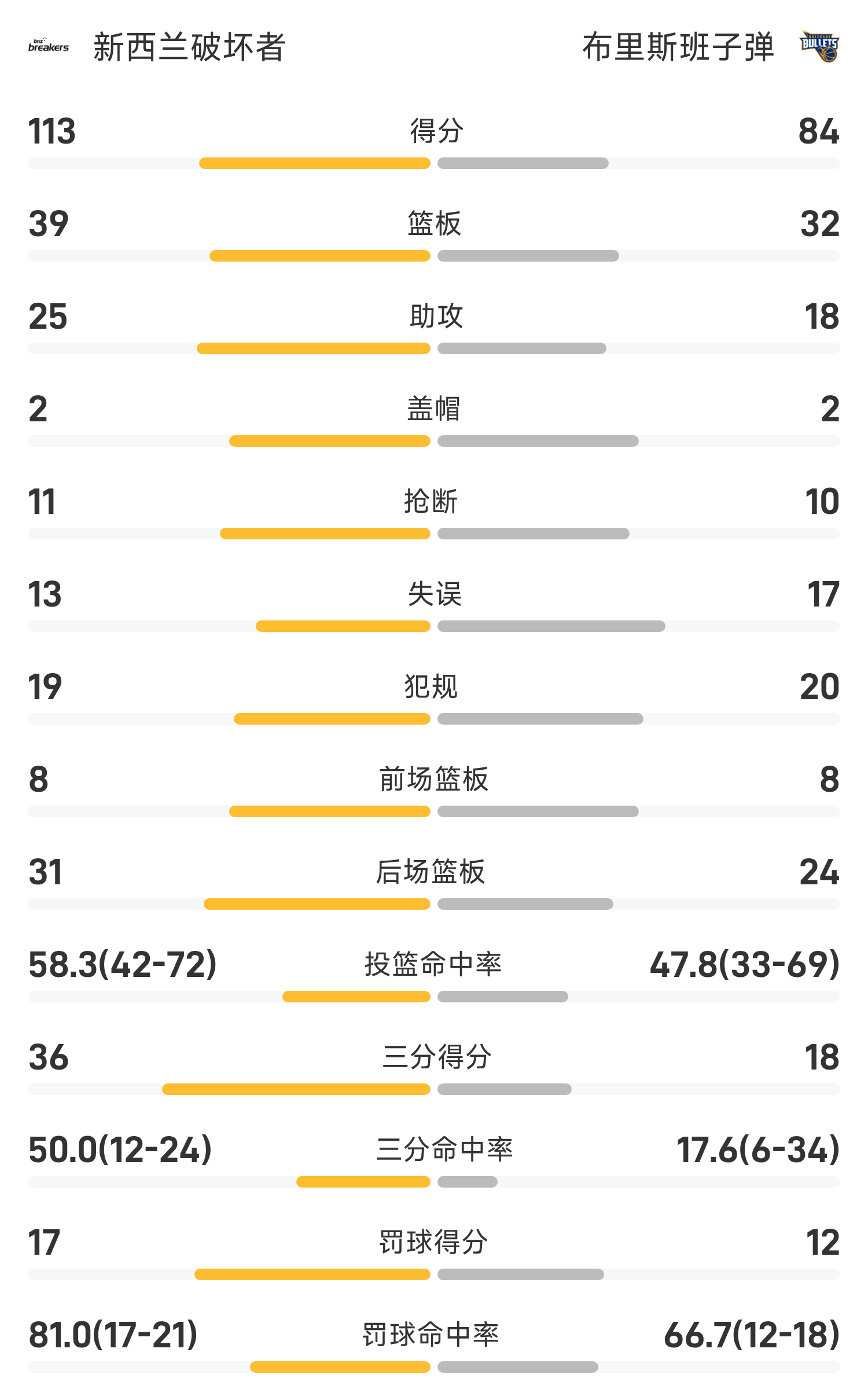 ในตอนท้ายของเกม บริสเบน บุลเล็ตส์ แพ้ นิวซีแลนด์ พิฆาต 84-113