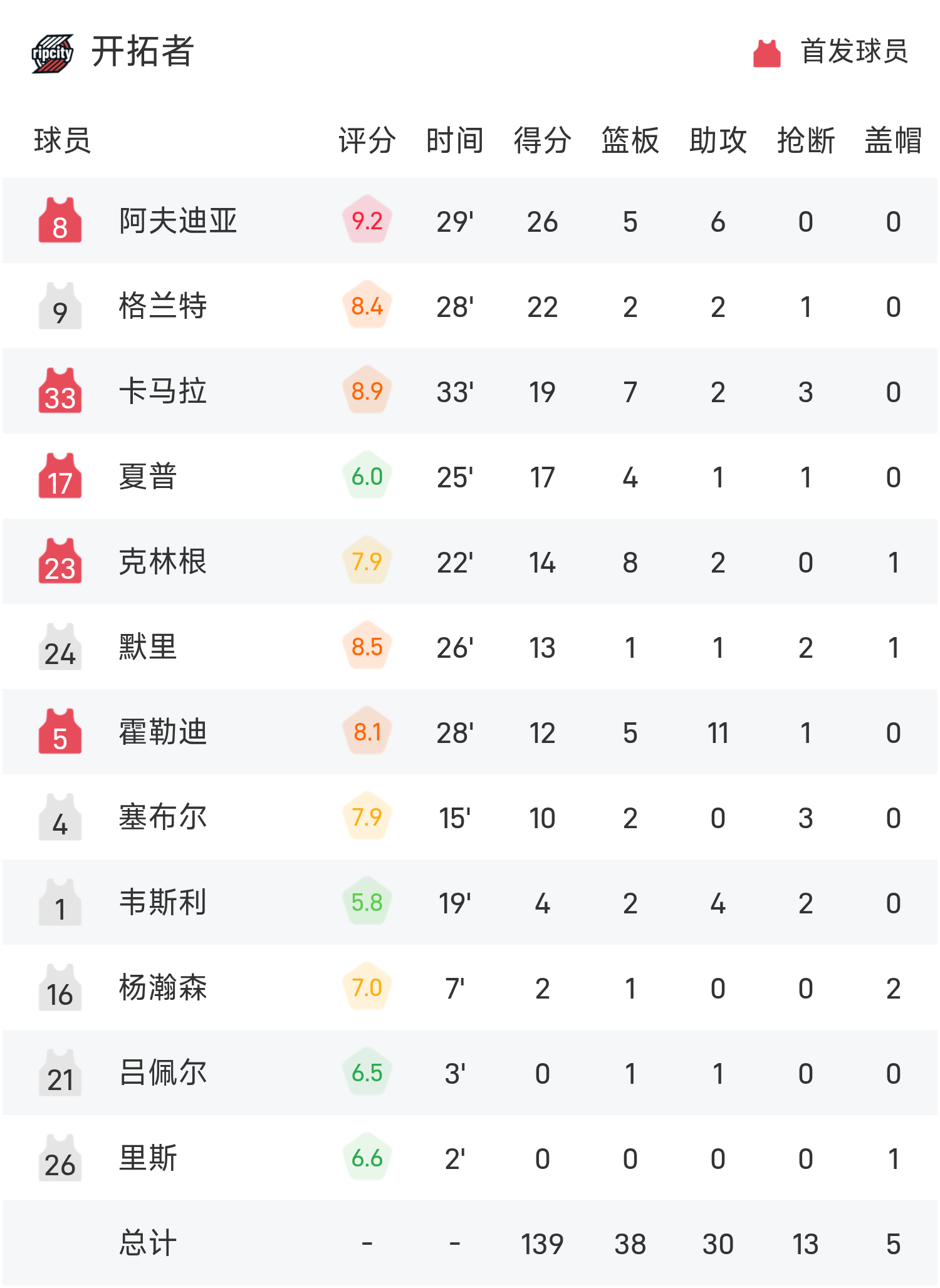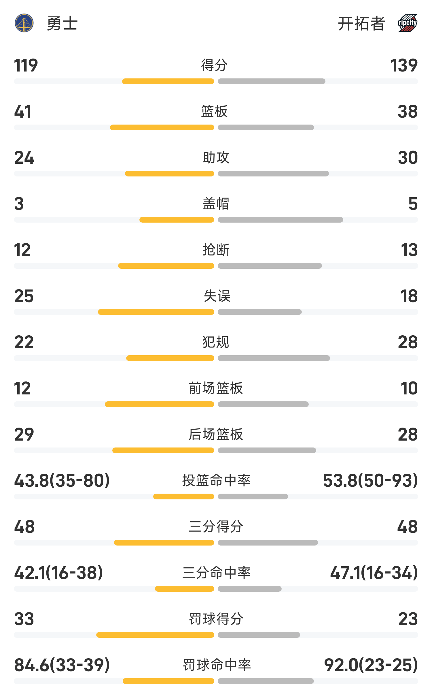 รายงานเกม NBA ยาง แฮนเซ่น 2 แต้ม 1 รีบาวด์ 2 บล็อก เทรลเบลเซอร์ส 139-119 วอร์ริเออร์ส