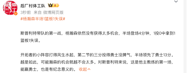 สื่อมวลชน: ยิ่งผู้เล่นตัวจริงของเทรลเบลเซอร์ทำผลงานได้ดีเท่าไร โอกาสที่ Yang Hansen ก็จะยิ่งน้อยลงเท่านั้น