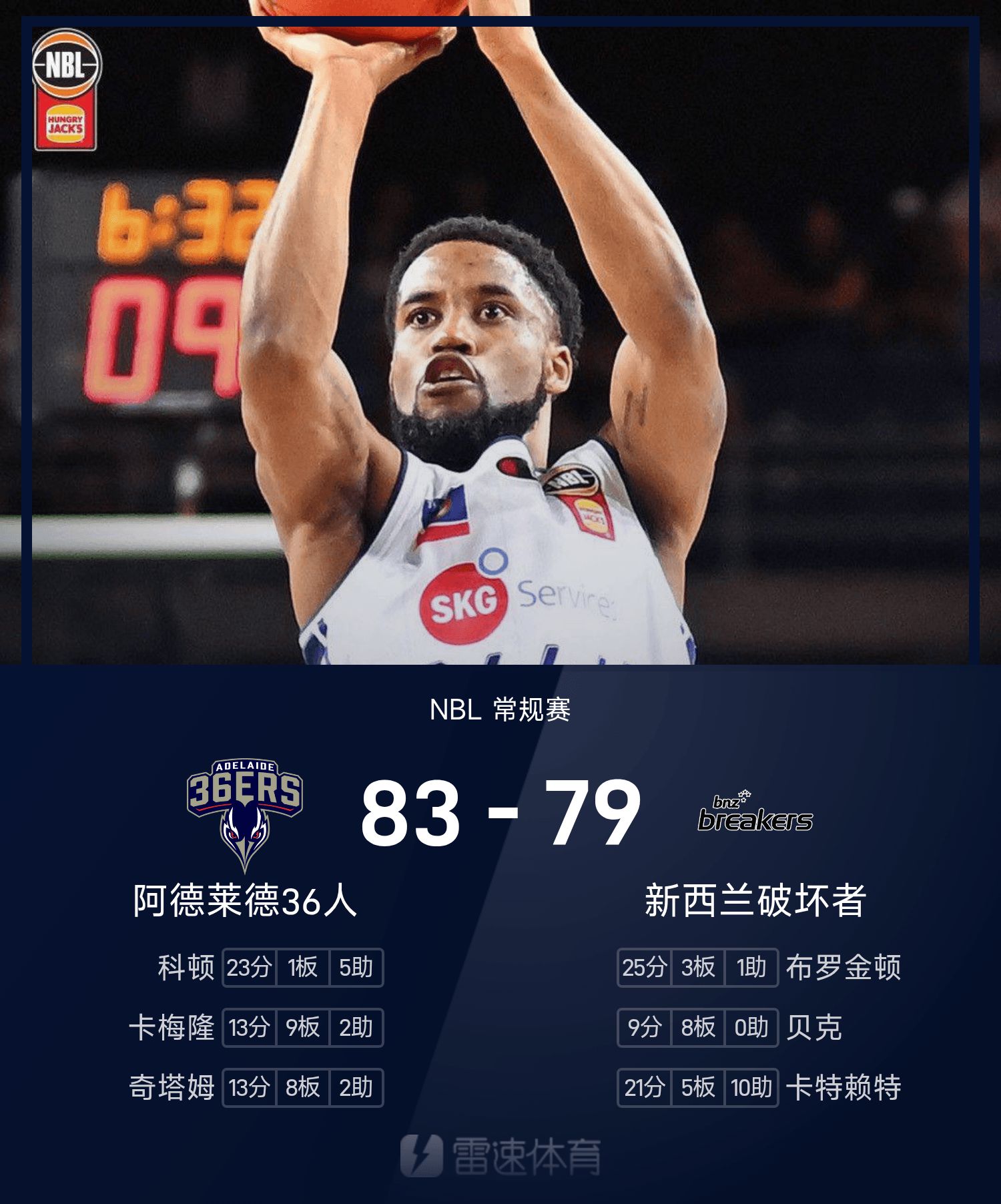 รายงานศึก NBL คอตตอน 23 แต้ม แอดิเลด 36เซอร์ส เฉือนนิวซีแลนด์ 83-79 อย่างหวุดหวิด