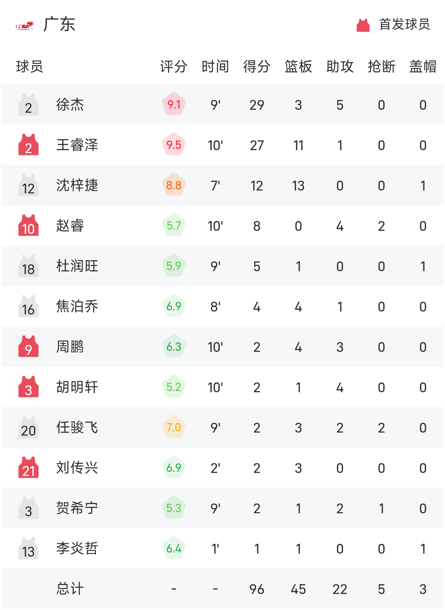 รายงานเกมบาสเก็ตบอลชายกีฬาแห่งชาติ: ซูเจี๋ยทำคะแนน 29 แต้มกวางตุ้งพลิกกลับเอาชนะเจียงซู 96-73