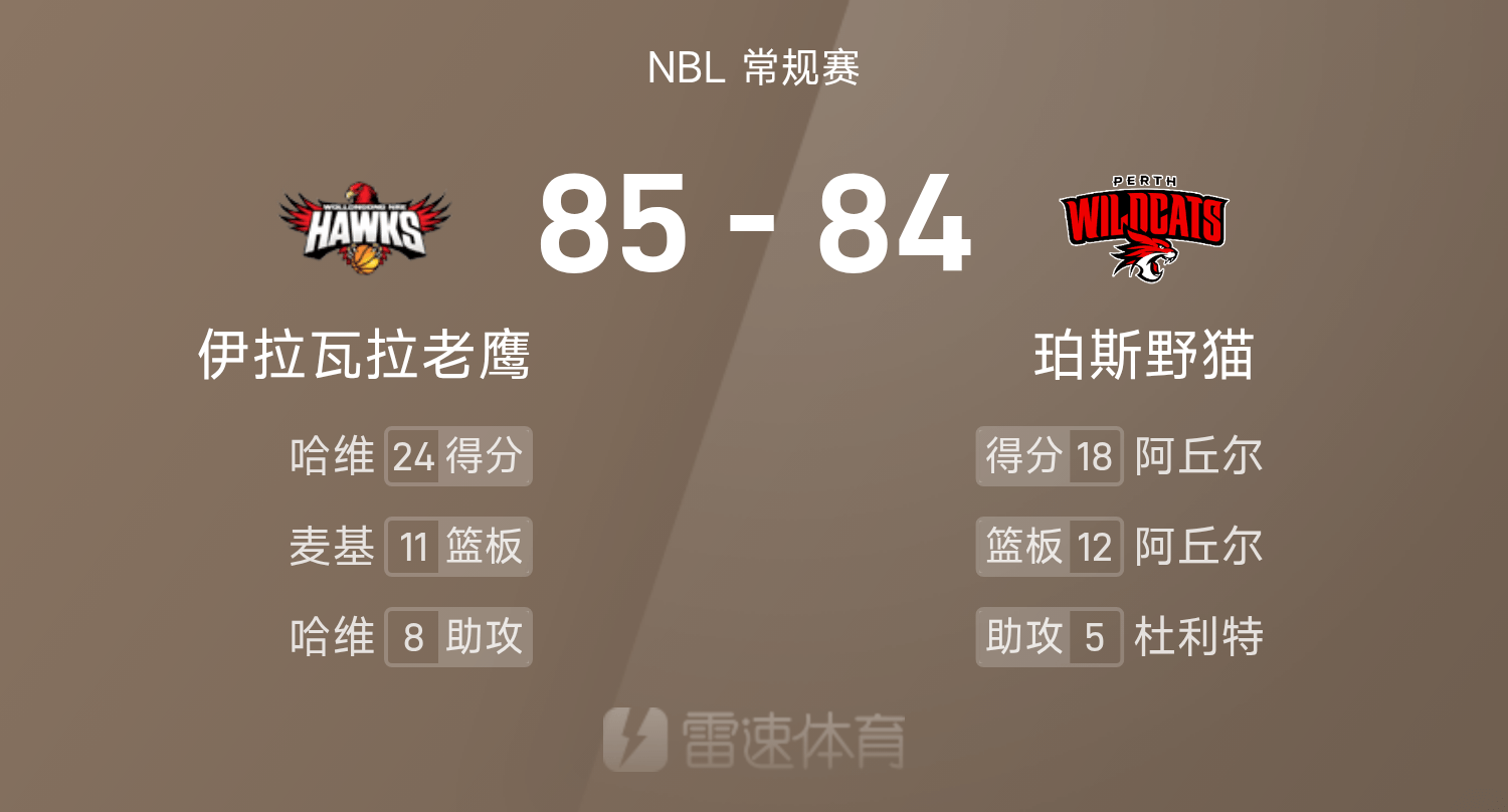 รายงานเกม NBL: ฮาร์วีย์ทำ 24 แต้ม 8 แอสซิสต์ แม็คกีโยนโทษครั้งสุดท้าย และทีมฮอว์กส์เอาชนะไวลด์แคทส์ 85-84 อย่างหวุดหวิด
