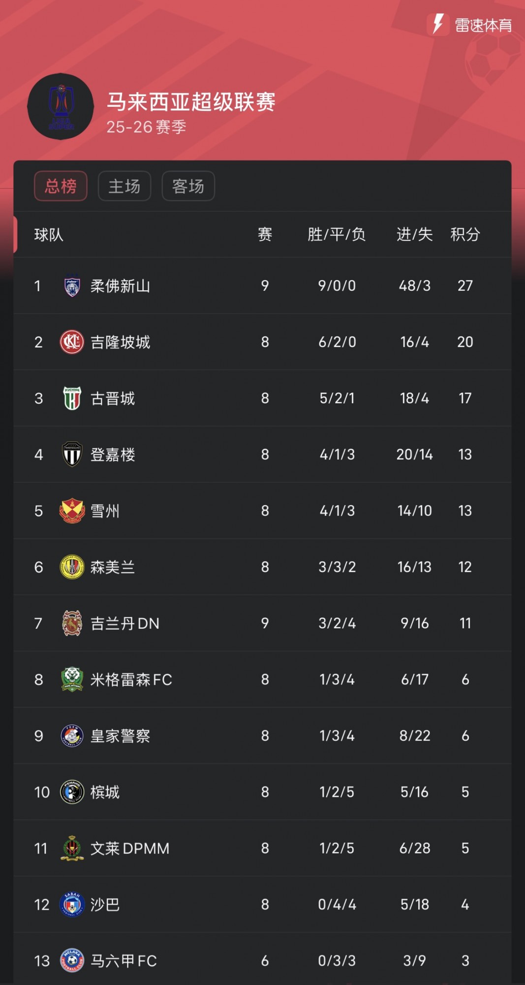 ในฐานะผู้นำของมาเลย์ซูเปอร์ลีก ยะโฮร์ชนะเกมลีกทั้งหมด 9 เกมในฤดูกาลนี้ ยิงได้ 48 ประตู เสียเพียง 3 ประตู และเฉลี่ยมากกว่า 5 ประตูต่อเกม