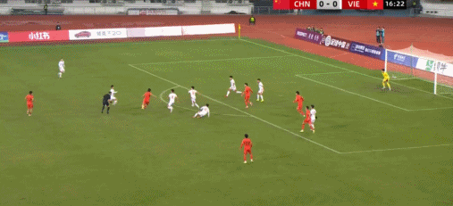 33’ ทีมจีนส่งบอลคุกคามจากทางซ้ายไปยังเขตโทษและผู้เล่นที่อยู่ข้างหน้าประตูก็ช้ากว่าก้าวหนึ่ง