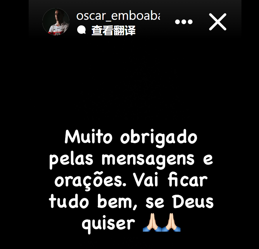 ตอนนี้ออสการ์ได้เผยแพร่การอัปเดตผ่านโซเชียลมีเดีย: "ขอบคุณมากสำหรับความเสียใจและคำอธิษฐานของทุกคน ทุกอย่างจะเรียบร้อยดี ขอพระเจ้าอวยพรคุณ"