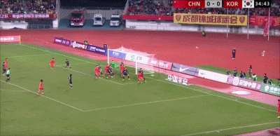 ทีมจีนเตะข้างสนามที่ระยะ 35' จากนั้นผู้รักษาประตูได้โหม่งบอลในพื้นที่สามวินาที