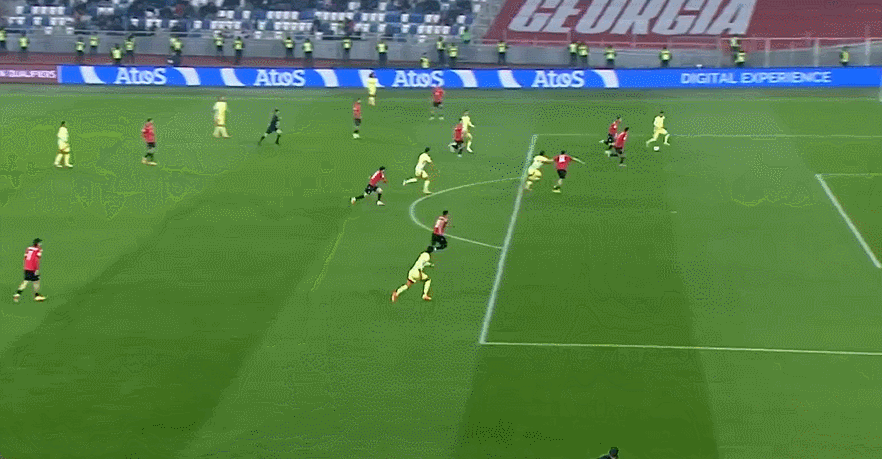 ในนาทีที่ 7 ของเกม ตอร์เรสบุกเข้าไปในโซนสามวินาทีเพื่อส่งบอลเข้าจุดโทษ พื้นที่ทำให้โกโฮลิชวิลีแฮนด์บอล สเปนเลยได้โอกาส 12 หลา จากนั้นโอวาซาบัลก็ยิงจุดโทษ 12 หลาและทำประตูแรก นาทีที่ 34 ตอร์เรสก้าวไปข้างหน้าเพื่อรับบอลจากโอยาร์ซาบัลและเตะมุมไกลช่วยให้สเปนขึ้นนำเป็น 3-0