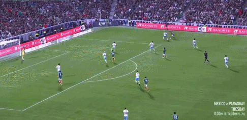 24’ ฆิเมเนซโหม่งบอลจากด้านหลัง และโลซาโนพลาดโอกาสทำประตูที่ว่างเปล่าด้วยการยิงครึ่งลูกอย่างช้าๆ