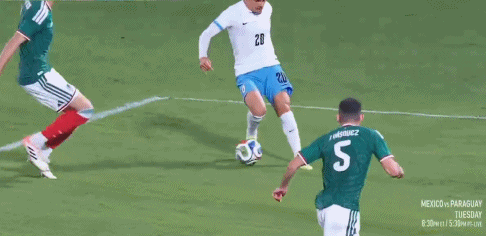 35' อัลวาราโดจ่ายบอลผ่าน ฆิเมเนซหันกลับมาเลี้ยงบอลโดยไม่มีกำลังและไม่ทำท่าคุกคาม