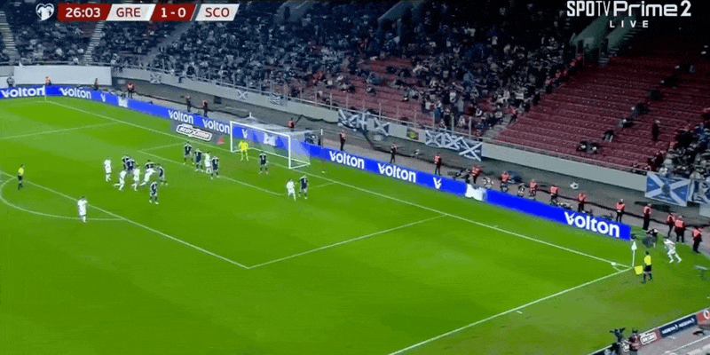 พักครึ่งแรกของยุโรปโลก: แบ็กซ์ตัสทำประตู, พาฟลิดิสออกจากตำแหน่งเนื่องจากอาการบาดเจ็บ, กรีซ 1-0 สกอตแลนด์