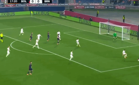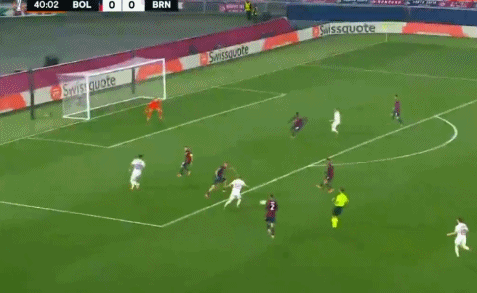 18’ เข้าประตูตัวเองที่อันตราย! โบโลญญ่าบุกจากทางขวา และแบร์นาร์เดสคี่จ่ายบอลจากเขตโทษเกือบเด้งเข้าปากประตู