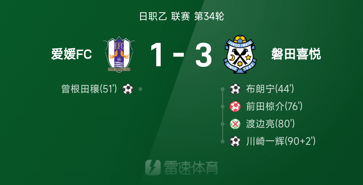 รายงานการแข่งขันเจแปนลีกบี มาเอดะ ฟุคุสุเกะทำเข้าประตูตัวเอง วาตานาเบะ เรียวพลาดแต้ม เอฮิเมะ 1-3 อิวาตะจอย