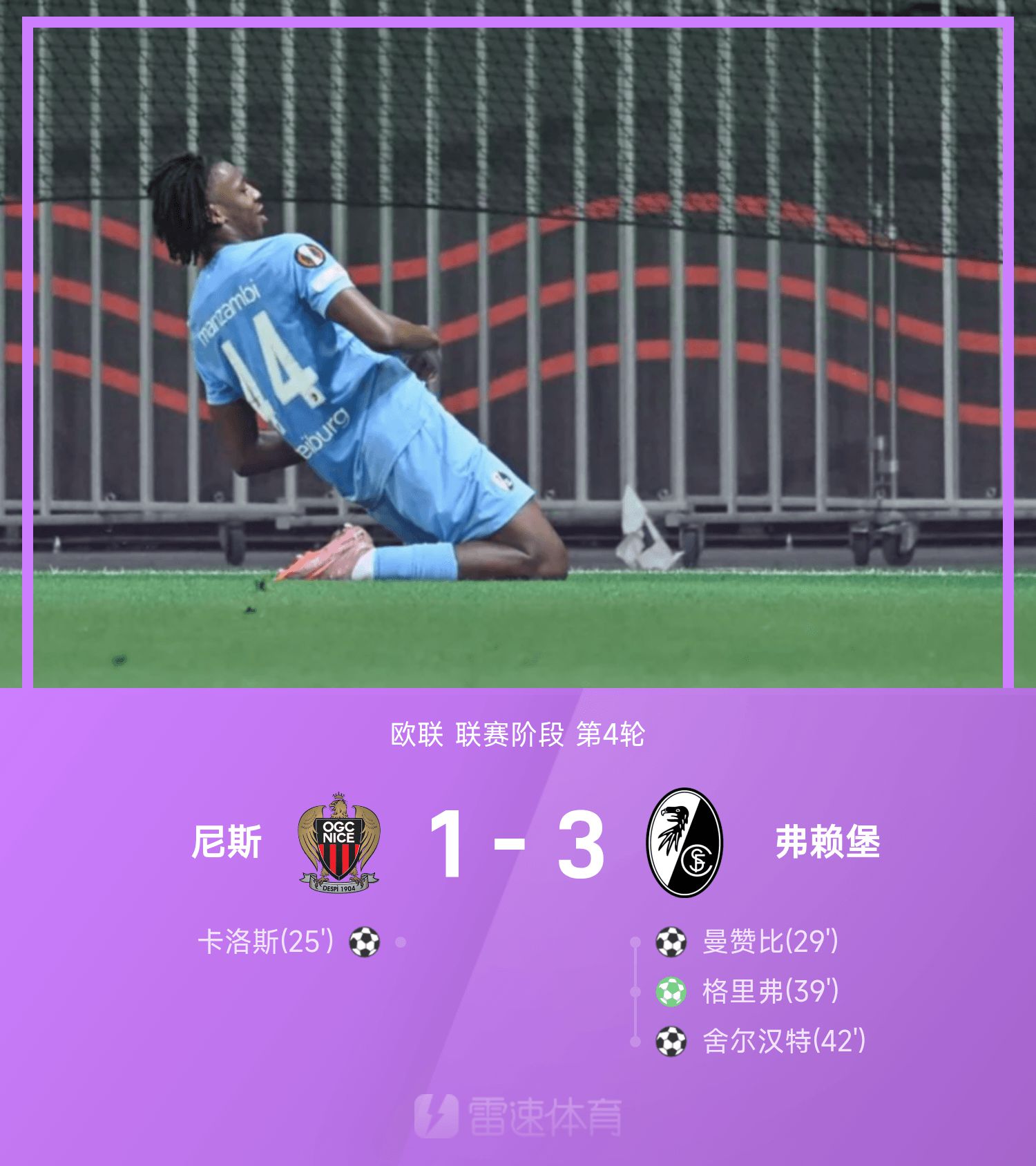 6686 Sports รายงานเมื่อวันที่ 7 พฤศจิกายนว่าในรอบที่สี่ของยูโรปาลีก 25-26 ทีมเจ้าบ้านนีซเผชิญหน้ากับไฟร์บวร์ก ในครึ่งแรกของแคมเปญนี้ คาร์ลอสยิงประตูแรกด้วยการยิงนัดเดียว Manzambi ยิงวอลเลย์เพื่อทำคะแนนให้เท่ากัน Grifo ยิงลูกโทษจากระยะ 12 หลา และ Sherhant ยิงอีกประตูจากมุมไกล หลังจากเปลี่ยนข้างและทะเลาะกันอีกครั้งก็ไม่มีใครทำประตูได้ จบเกม ไฟร์บวร์ก เอาชนะ นีซ 3-1