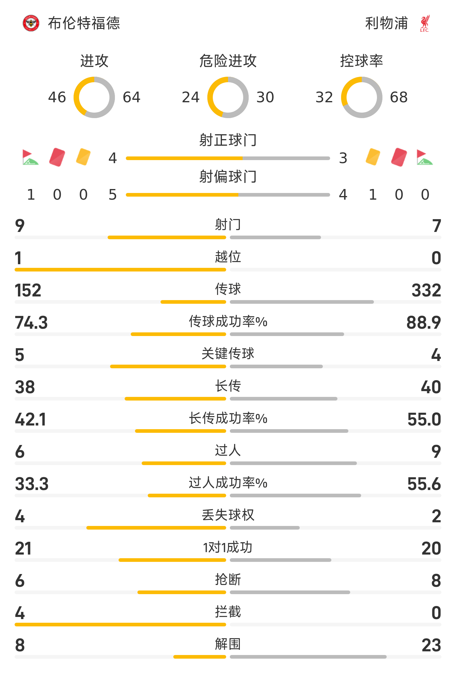 พักครึ่งพรีเมียร์ลีก: วอตทาราทำประตูจากฮุกข้าง, เบรนท์ฟอร์ด ชนะลิเวอร์พูล 2-1 ชั่วคราว