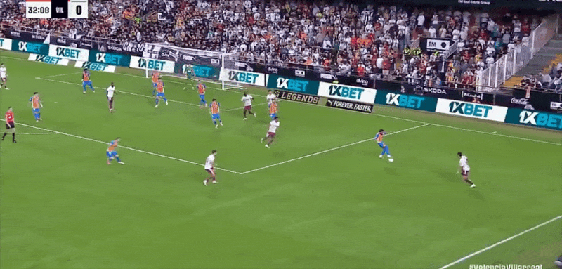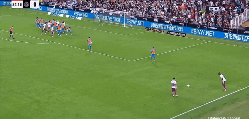 รายชื่อผู้เล่นตัวจริงของบาเลนเซีย: 25-Aguirre Zabala, 14-Gaya, 12-Correa, 3-Copet, 5-Tarraga, 18-Pepelu, 7-Danjuma, 11-Rioja, 16-Lo Pace, 8-เกร์รา, 15-เบลตรัน