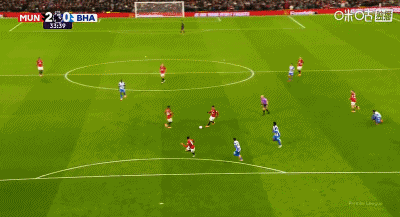 การวอลเลย์ 6 หลาของ 48'B Fee ถูกแวร์บรูเชนสกัดกั้นโดยไม่รู้ตัว แมนเชสเตอร์ ยูไนเต็ด ยังคงเป็น 2-0 ไบรท์ตัน