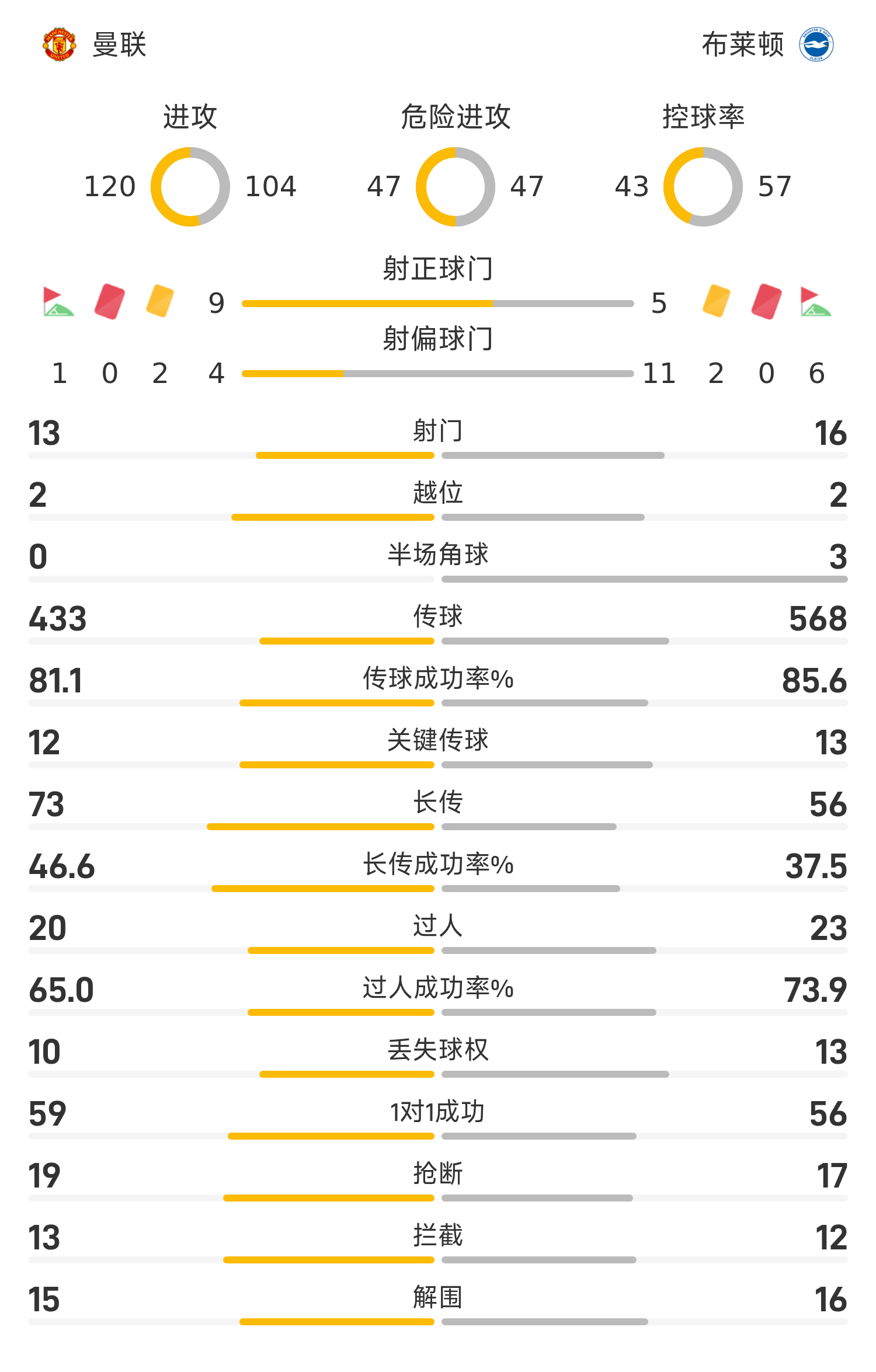 ในนาทีที่ 61 ของครึ่งหลัง เชชโก้ แอสซิสต์ เอ็มเบโม และทำประตูได้อย่างใจเย็น แมนเชสเตอร์ ยูไนเต็ด ขยายสกอร์เป็น 3-0 นาทีที่ 74 เวลเบ็คใช้โอกาสฟรีคิกทำประตูให้ไบรท์ตันได้ประตูกลับ ในช่วงทดเวลาบาดเจ็บนาทีที่ 2 มิลเนอร์ได้เตะข้างช่วยคอสโตรัสโหม่งทำประตู ระหว่างนับถอยหลังเกม Mbemo เตะมุมไกลอย่างใจเย็นและทำประตูเพื่อผนึกชัยชนะ ในที่สุดแมนเชสเตอร์ ยูไนเต็ดก็เอาชนะไบรท์ตัน 4-2 ในบ้าน ถือเป็นชัยชนะในลีกนัดที่ 3 ติดต่อกัน