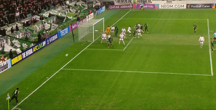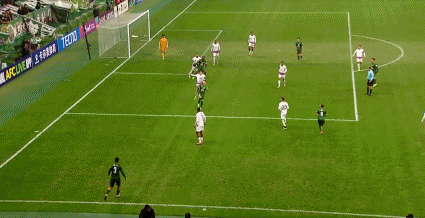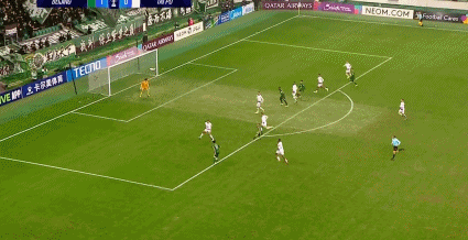 50' กูเจียเตะลูกโทษแล้วเข้าเป้าโดยตรง จากนั้นสอดเข้าไปแล้วยิงได้สูงกว่าเป้าเล็กน้อย